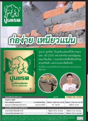 ปูนแรดสูตรใหม่ ช่วยให้การทำงานก่อง่าย ฉาบลื่น งานที่ได้แข็งแรง ทั้งการก่ออิฐฉาบผนังและเทคอนกรีต เสา คาน พื้น เพราะเนื้อปูนที่ละเอียด การแห้งตัวที่พอเหมาะ และการรับน้ำหนักได้ดี ปูนแรดจึงเหมาะสมกับการใช้งานอเนกประสงค์ทั้งงาน ก่อ ฉาบ เท