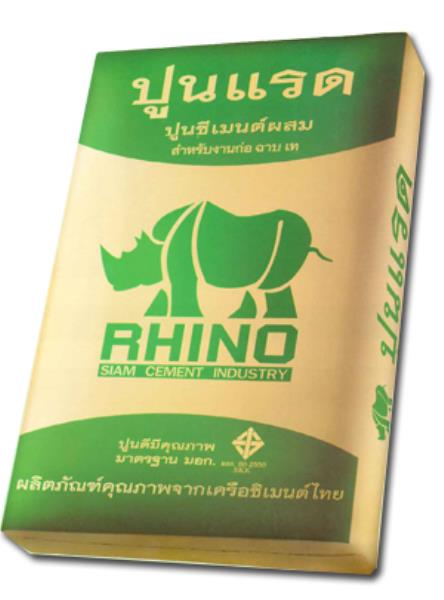 ปูนซีเมนต์ถุงตราแรด ขนาดบรรจุ 50 กก. เป็นปูนโครงสร้างของ เอสซีจี(SCG) ตราแรด ขนาดบรรจุ 50 กก./ถุง