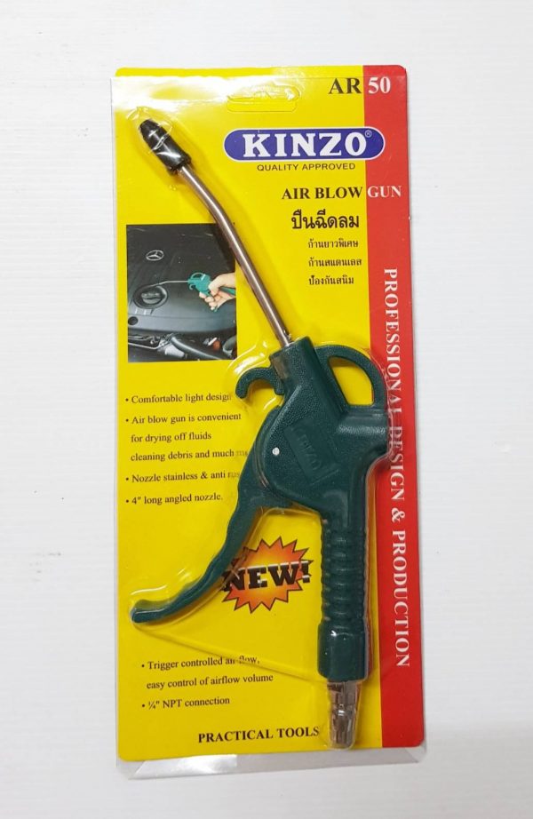 - ปืนเป่าลม พร้อมข้อต่อคอปเปอร์ ด้ามพลาสติกปลายปืนลมยาว 4 นิ้ว สามารถควบคุมลมให้ออกมาน้อย ได้จังหวะเหนี่ยวไกด้ามปืนมีตะขอไว้เกี่ยว แขวนเก็บ