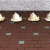 7.ลงน้ำยาเคลือบผิวบล็อก (ลงน้ำยาประสานทรายในบริเวณร่องบล็อก) ในบริเวณร่องบล็อก เพื่อให้ทรายและก้อนบล็อกยึดติดกัน ไม่ฟุ้งกระจายเมื่อมีลมพัด และ ช่วยทำให้บล็อกมีความคงทนแข็งแรงด้วย หลังจากนั้นทิ้งไว้จนแห้งแล้วจึงลงน้ำยาเคลือบเงาผิวคอนกรีตเพื่อสร้างความสดใสให้กับผิวบล็อก